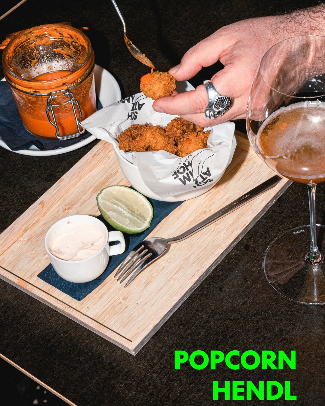 wir tischen auf, Gregor erklärt:POPCORN HENDL