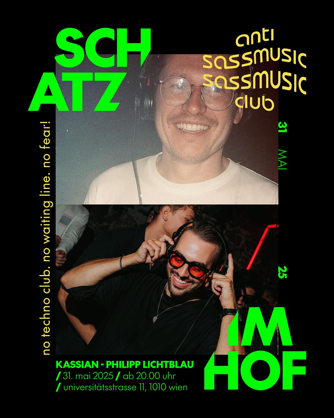 die Mischung macht‘s. @sassmusicclub x @schatzimhofSA mit @kassian_xander & @philipplichtblau 💚ab 20.00